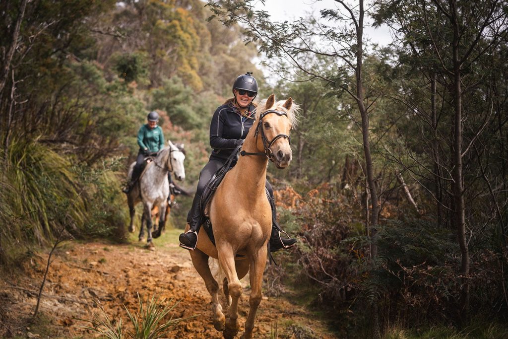 Eucalyptus forest, wildlife and sweeping farm views – a relaxed horse-riding experience for all ages and abilities.